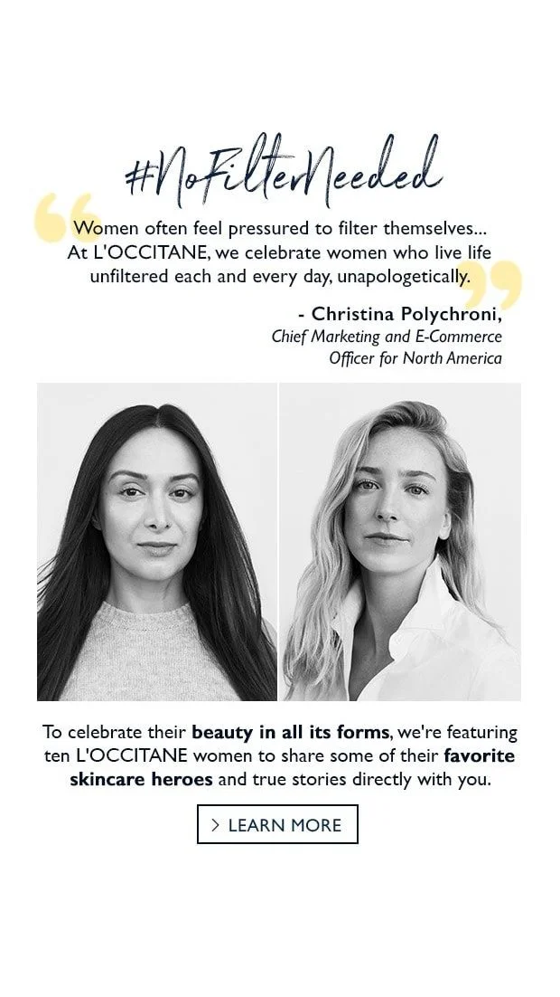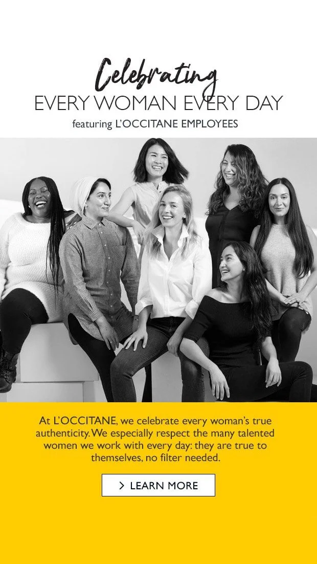 For this single day studio shoot we defined two separate sets to streamline production by allowing the photography and videography to take place in tandem. Production worked with 10 first-time talent, all women employed by L’Occitane, from the supply chain to the in-store teams. This was the first inclusive campaign for L’Occitane and was created to celebrate the natural beauty of all women. Emphasis was placed on natural light and looks to make women feel empowered in their own skin.